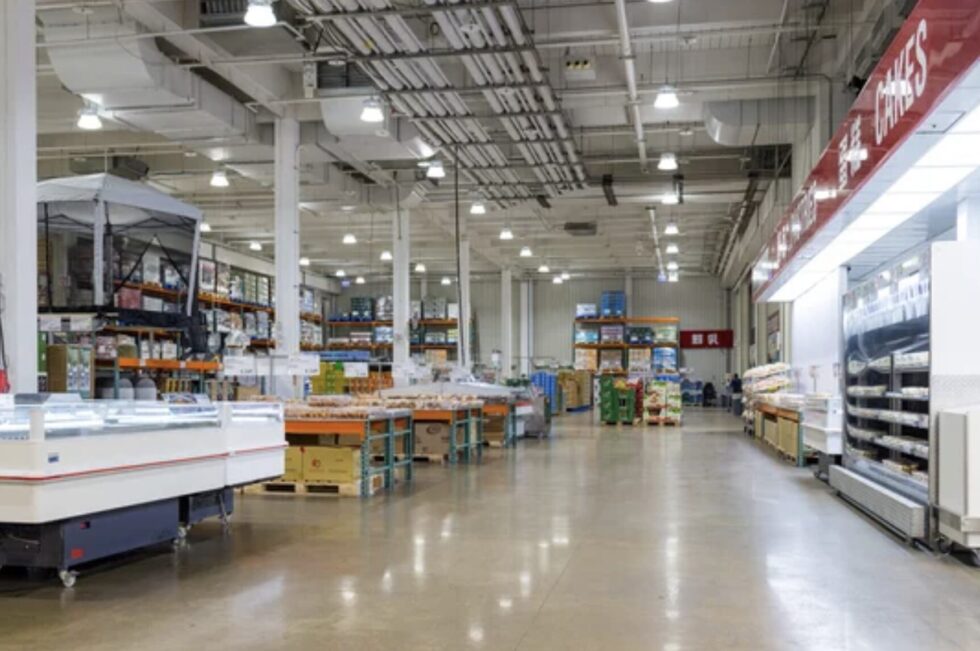 岐阜羽島倉庫店の店内は、典型的なコストコスタイルである「高天井・通路広め・パレット陳列」が採用されています。入店後すぐに生鮮食品・惣菜・冷蔵品のエリアが広がっており、そこを抜けると家電・衣料・日用品のゾーンが続きます。